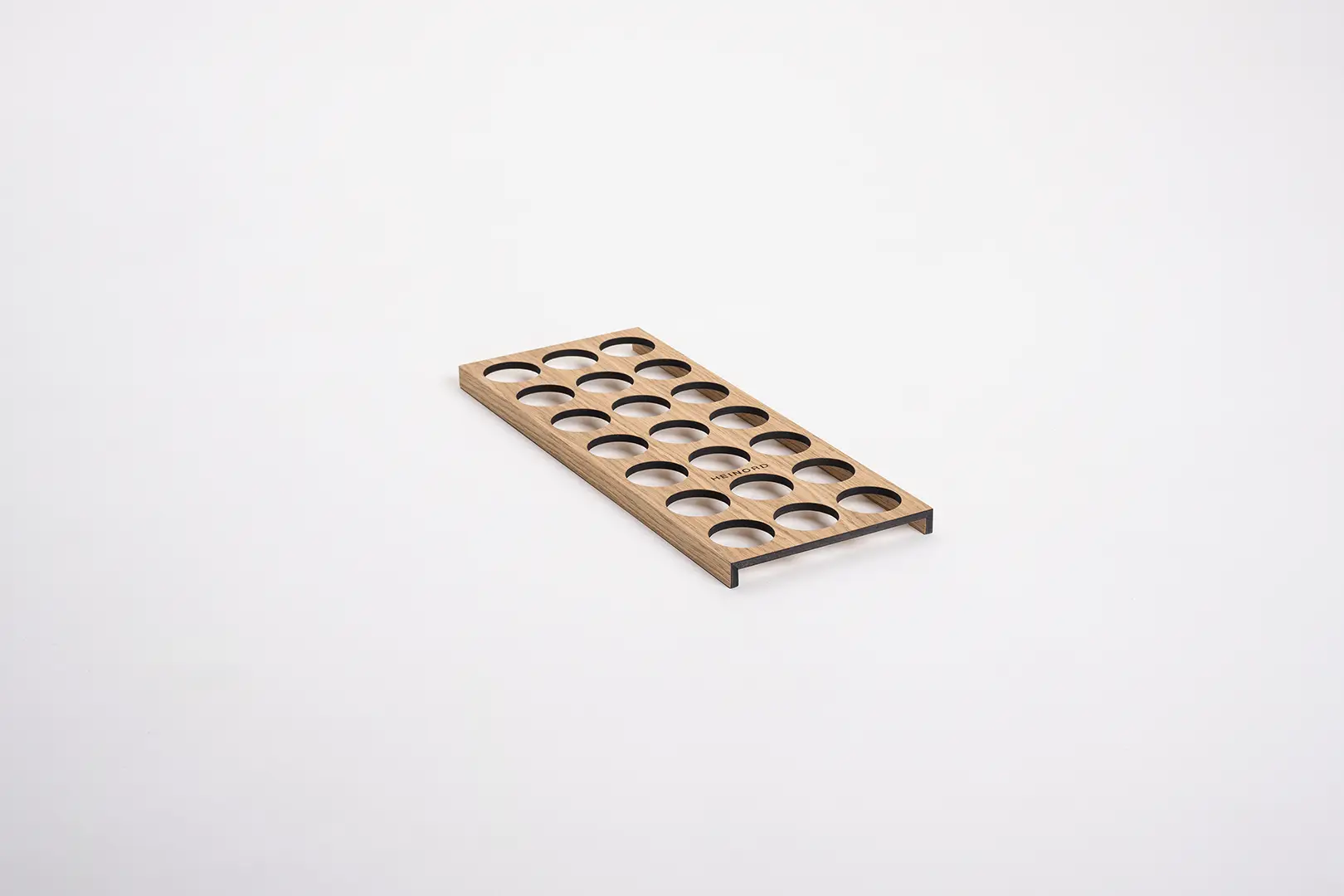 Eleganter Organizer aus massiver Eiche zur Aufbewahrung niedriger Gewürzgläser.