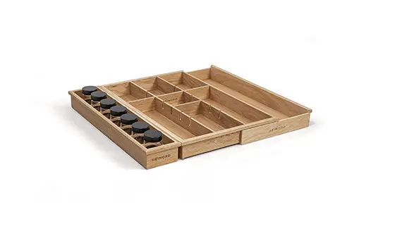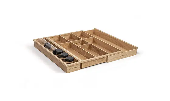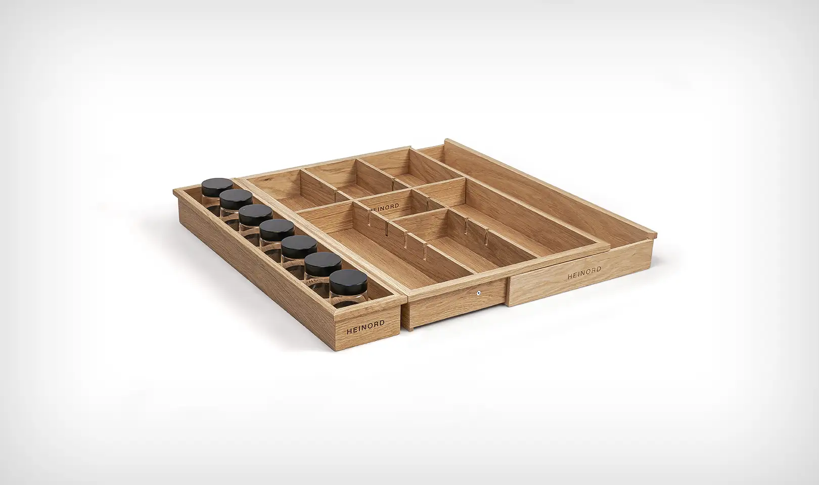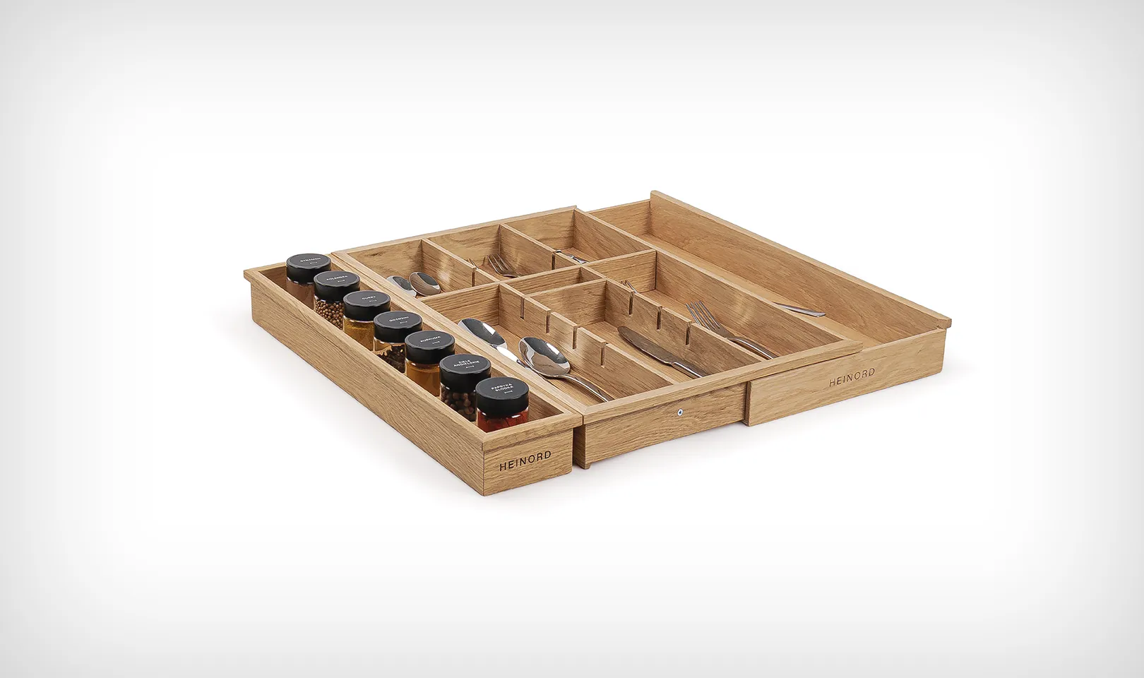 Es gibt viele Küchenschubladen-Organizer, aber natürliches, massives Eichenholz ist ein einzigartiges Material in diesem Segment.